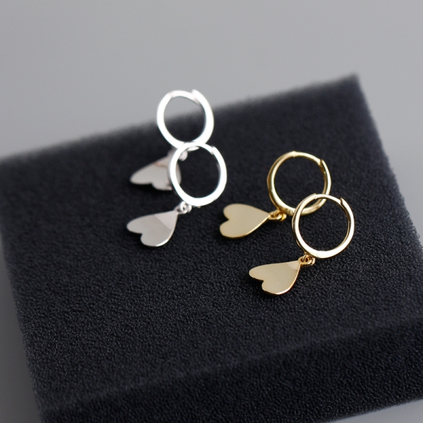 Golden love heart s925 sterling silver earrings