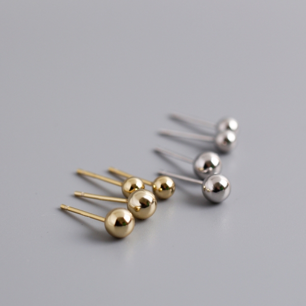Golden s925 sterling silver small fresh peas round beads earrings earrings