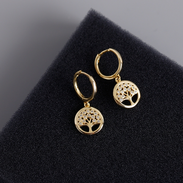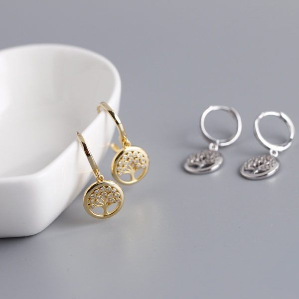 New earrings diamond-set peace tree s925 sterling silver earrings earrings earrings women