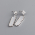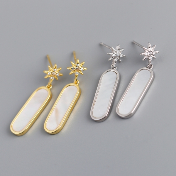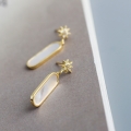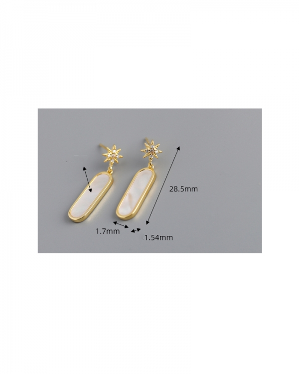 Light luxury style golden white stone earrings ins fashion ol flash star square s925 sterling silver earrings earrings earrings